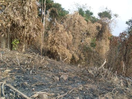 Chỉ vào bãi đất trống mà chỉ mấy hôm trước thôi vẫn còn là rừng, một người dân bản địa cho chúng tôi biết: "Vụ đốt rừng này mới diễn ra hôm 22-11-2011. Doanh nghiệp Duy Thông do ông Dương Văn Trần, làm giám đốc đã gây ra "thảm cảnh" này, chúng tôi đã sớm phát hiện và phản đối nhưng họ vẫn huy động nhiều người lên đây đốt phá rừng, không hiểu lý do gì mà doanh nghiệp lại bất chấp pháp luật như vậy".