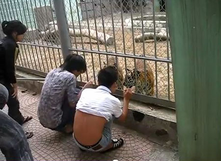 Choáng với cảnh trèo rào trêu hổ ở vườn thú HN