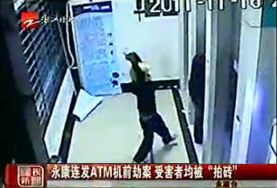 Tên cướp dùng gạch tấn công người ở máy ATM