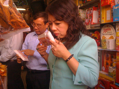 Bộ trưởng Bộ Y tế Nguyễn Thị Kim Tiến kiểm tra một cơ sở chế biến, kinh doanh thực phẩm tại quận 5 - TPHCM sáng 17-12