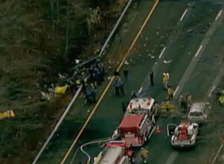 Máy bay Mỹ đâm xuống đường cao tốc, 5 người chết