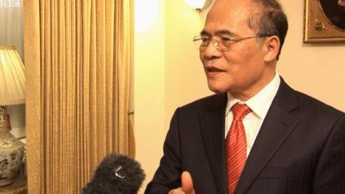Phỏng vấn Chủ tịch Quốc hội Nguyễn Sinh Hùng ngoài hành lang phòng họp...
