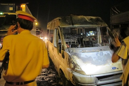 Ô tô lại bốc cháy trên đường, 3 người bị bỏng