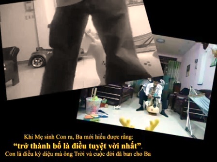 Đoạn clip 6’25’’ mô tả những giây phút hiếm hoi Hiếu được gần kề con, đó là giây phút hiếm hoi Hiếu được vào nhà vợ cũ vui đùa với con. Có những lúc giữa đêm khuya anh cầm đèn pin đến gặp con nhưng cha con cũng chỉ có thể chạm được nhau qua cánh cửa sắt của ngôi nhà đó.