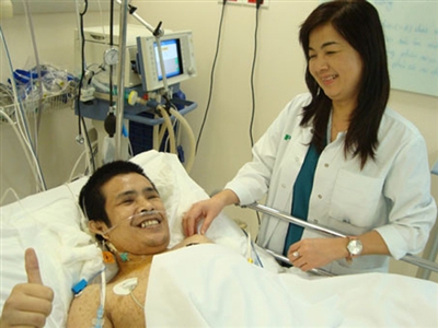 Lúc 14h ngày 6-1, anh Hải đă tỉnh lại, tuy c̣n chảy máu vết mổ, sốt nhưng đă được bác sĩ chỉ định cho truyền thêm máu, cầm máu và hạ sốt, đồng thời ngưng thuốc an thần. Đến 20h cùng ngày, bác sĩ đă cho rút ống nội khí quản nên bệnh nhân tự thở được, nói chuyện được b́nh thường và anh Hải đă “đ̣i gặp mẹ” trong trạng thái tinh thần tốt.