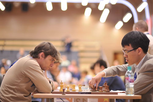 Lê Quang Liêm gặp Bruzon - ảnh: worldchess.com
