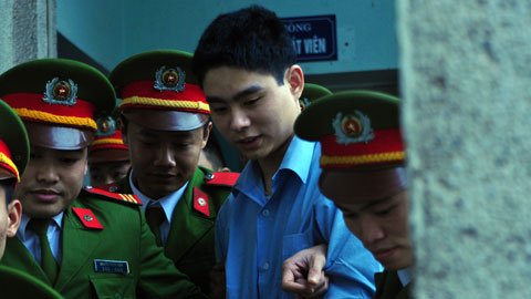 Luyện với gương mặt tái mét nhanh chóng được đưa vào phòng xét xử. Hắn dáo dác quay lại tìm gương mặt người thân và chẳng có vẻ gì là ăn năn hối hận.