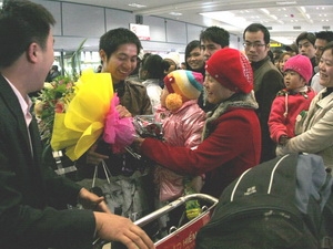 Đón người nhà sau nhiều năm ở nước ngoài trở về tại sân bay quốc tế Nội Bài. (Ảnh: Huy Hùng/TTXVN)