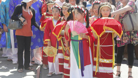 [Các thanh, thiếu niên người Việt tham gia Hội chợ Tết 2012 tại Richmond, thành phố Melbourne, Australia. (Bay Vút).]