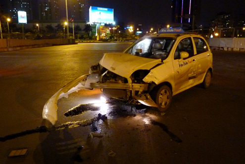 Đâm phải Honda Civic, taxi vỡ tan đầu