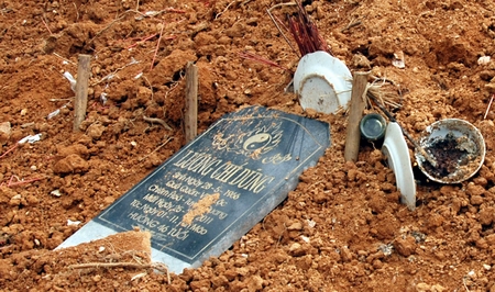 Quặn ḷng vợ chứng kiến xác chồng bị đào xới