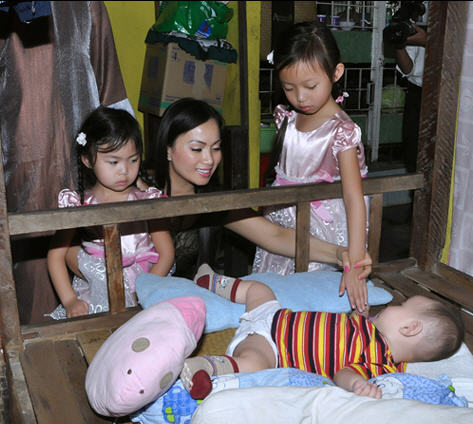 Hà Phương đi từ thiện cùng hai con gái