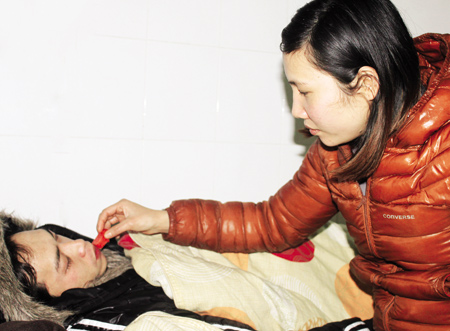 Thuỷ chăm sóc cho người chồng mắc bạo bệnh. Ảnh: Q.T