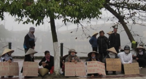 Nông dân Nam định biểu t́nh trước cổng Ủy ban Nhân dân tỉnh