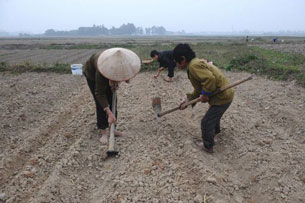 Người nông dân làm ruộng tại tỉnh Bắc Giang, ảnh chụp hôm 14-02-2012. AFP PHOTO.