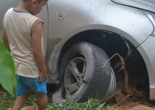 Nổ lốp dưới chân đèo, 1 ô tô lao thẳng vào nhà dân