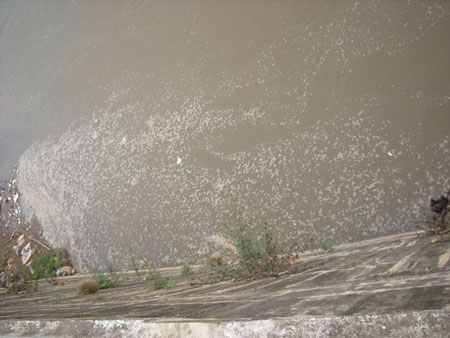 Sông Hồng lại sủi bọt và bốc mùi khác thường