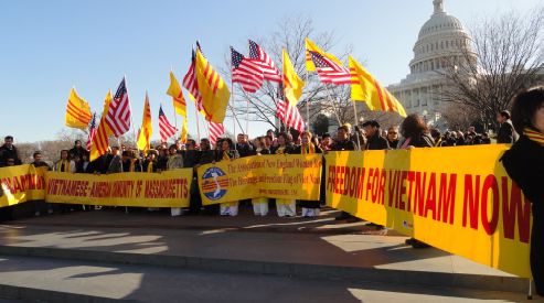 Chúng tôi có lẽ là phái đoàn đầu tiên có mặt tại tiền đường Quốc Hội, chúng tôi chụp hình lưu niệm, rồi xe này đến xe khác, cộng đồng này, đến cộng đồng khác tấp nập, nhộn nhịp, chúng tôi được phát bảng tên do đã ghi danh trước, những thủ tục an ninh căn bản để vào trong Quốc Hội , hôm đó cũng là dịp người Mỹ gốc Do Thái có cuộc vận động hành lang, nhưng so với người Việt chúng ta thì chiếm đa số áp đảo . Thực sự cũng có sự lúng túng, lộn xộn lúc ban đầu, vì sự hiện diện qúa đông của đồng hương, ngoài dự trù của ban tổ chức , nhưng sau đó, dần dà cũng đi vào ổn định, tôi nhận thấy tinh thần làm việc tích cực của các cơ quan truyền thông báo chí, của quý anh chị trong ban tổ chức, những khuân mặt thân quen và vô cùng nhiệt tình mà tôi trân trọng: Tiến sỹ Nguyễn đình Thắng và cựu Dân Biểu Cao Quang Ánh, xốc vác, năng nổ . Tiểu bang Massachusetts chúng tôi chắc ăn đã gởi hai bạn trẻ Ngô Triệu Vũ và Chiêm bảo Nghi đi trước để làm việc cụ thể với ban tổ chức, chúng tôi cũng đã làm hẹn với các Thượng nghị sỹ và Dân Biểu Tiểu bang nhà để tiếp xúc và làm việc, nói chung, phái đoàn Massachusetts chẳng những tiếp xúc, làm việc đúng giờ theo hẹn và được tiếp đón thân tình với các Nghị sỹ, Dân biểu người nhà, cộng thêm cách trình bày ngắn gọn nhưng xúc tích và đầy đủ, rõ ràng của cháu Đan Thanh làm cho quý Nghị Sỹ, Dân Biểu nắm bắt được yêu cầu, nguyện vọng của phái đoàn một cách nhanh chóng, chúng tôi còn phụ với nhiều đồng hương của các Tiểu bang khác trong các lần tiếp xúc với các Nghị sỹ, Dân biểu địa phương cho thêm khí thế. Buổi tiệc do ban tổ chức khoản đãi tại phòng B400 tại Toà nhà Quốc Hội ( hình như thực phẩm chính do Cựu Dân biểu Cao quang Ánh khoản đãi ) phòng hơi chật so với số lượng người qúa đông, khí thế vô cùng sôi nổi, hào hứng, một số Thượng Nghị sỹ, Dân biểu cũng hiện diện và có những lời phát biểu mạnh mẽ ủng hộ Nhân quyền cho Việt Nam, ủng hộ việc đưa Việt nam trở lại danh sách các quốc gia cần quan tâm về nhân quyền và tự do tôn giáo, sau đó Tiến sỹ Nguyễn đình Thắng đề nghị mọi người cùng di chuyển qua sân hông Quốc Hội cho thoáng mát . Ngay ngày hôm sau, kết qủa là : Ủy ban đối ngoại Hạ viện Mỹ thông qua Dự luật Nhân quyền Việt Nam vào ngày 07 tháng 03 năm 2012 sau hai ngày Hành pháp và Lập pháp Mỹ có các buổi tiếp xúc và làm việc với phái đoàn hàng trăm người Việt hải ngoại hôm mồng 5 và 6 tháng 3 năm 2012 tại Thủ đô Washington DC về vấn đề thúc đẩy Việt nam tôn trọng Nhân quyền , dịp này Dân biểu Chris Smith phát biểu : “Chính phủ Hoa kỳ cần gởi một thông điệp rõ rệt cho chế độ đang cầm quyền tại Việt nam rằng, họ phải chấm dứt các vi phạm nhân quyền đối với chính công dân của họ.” (VOA 08 tháng 03