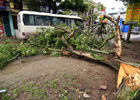 Cây bật gốc sau cơn giông gió bất ngờ tại Hà Nội