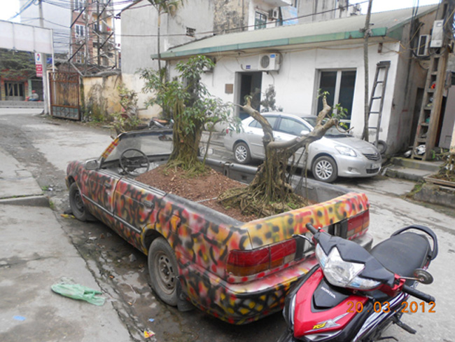 Siêu sáng tạo với chậu cây cảnh làm từ ô tô