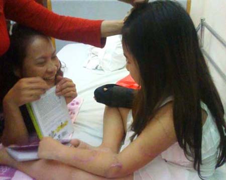 Người bác này cho biết thêm, 3 tháng một lần Bích phải bay ra Hà Nội để tái khám và tiếp tục điều trị bàn tay phải. Hiện tại, hàng ngày, Bích vẫn phải uống thuốc và có một bác sỹ vật lý trị liệu chữa trị để đảm bảo việc tập luyện đều đặn và đúng phương pháp, nếu không cánh tay phải của cháu sẽ teo lại.