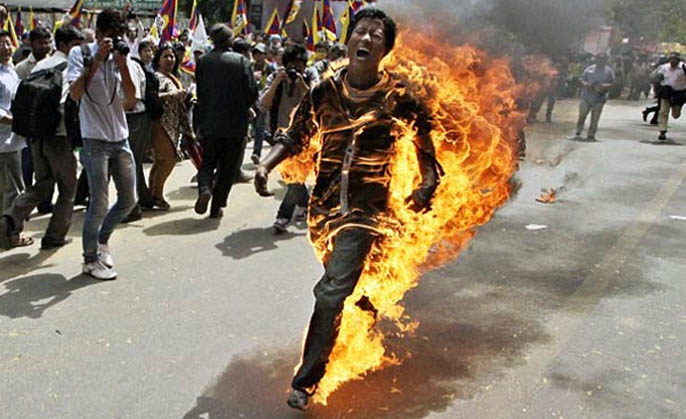 Bức hình thanh niên Tây Tạng tự thiêu phản kháng lãnh đạo cộng sản Tàu là Hồ Cẩm Đào khi đến thăm Ấn Độ, chắc chắn làm thế giới bùi ngùi xúc động, và là ngọn lửa sẽ thiêu rụi chế độ cộng sản Tàu trong tương lai.