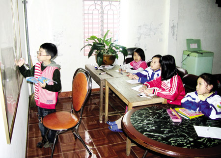 Lớp học im phăng phắc, chỉ cần nghe tiếng xì xào nho nhỏ là lập tức "thầy giáo" nghiêm mặt nhắc nhở. Để viết lên bảng, "thầy giáo" phải đứng trên một cái ghế khá cao. 7 học sinh được thầy gọi lên kiểm tra đều "thưa thầy" rất lễ phép. "Thầy" Giỏi chia bảng làm 3 phần, để có thể dạy mấy "cấp độ" khác nhau, vì trong 7 học sinh theo học thì có các em từ lớp 1 đến lớp 5. "Thầy" cũng tiến hành chấm điểm và xếp loại cho mỗi "trò" vào cuối buổi. Có thể dễ dàng nhận thấy, tại lớp học đặc biệt này, cả thầy lẫn trò đều dạy và học rất nghiêm túc, hứng thú.