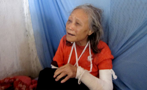 Hai tay bị găy, hai cẳng chân bà Tung đầy những vết thương