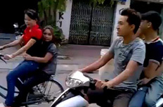 Phẫn nộ nhìn ‘trẻ trâu’ tạt nước các cô gái đi xe đạp