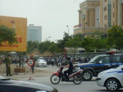 Nông dân biểu t́nh tại Cầu Giấy, Hà Nội