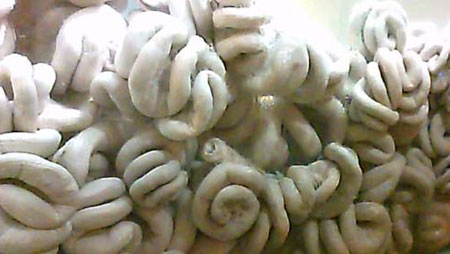 Dồi trường thối sẽ qua công đoạn tẩy mùi - Ảnh chụp từ camera