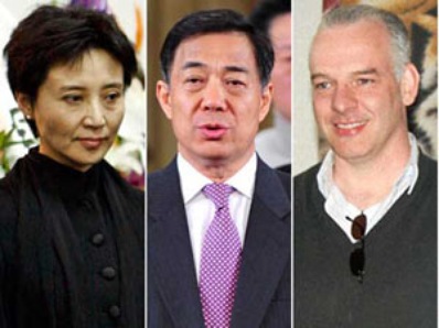Từ trái qua: Bà Cốc Khai Lai, ông Bạc Hy Lai, ông Neil Heywood và ông Vương Lập Quân. Ảnh: SKY NEWS