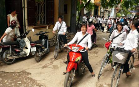 Từ nhiều năm nay, Công an Hà Nội đă áp dụng nhiều biện pháp mạnh để ngăn chặn t́nh trạng học sinh chưa đủ tuổi đi xe máy đến trường. Tuy nhiên, thời điểm này, tại các trường THPT trên địa bàn Thủ đô, t́nh trang học sinh đi xe máy đến trường vẫn diễn ra nhan nhản. V́ sao đă có nhiều biện pháp nhưng Hà Nội không thể dẹp nạn học sinh đi xe máy đến trường?.