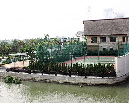 Sân tennis của Công ty CP địa ốc Phú Long được xây trên hành lang bảo vệ đường sông - Ảnh: Đình Sơn |