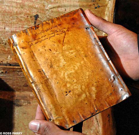 Trang cuối cùng của cuốn sách “Practicarum quaestionum circa legas regias Hispaniae”, một cuốn sách về luật pháp Tây Ban Nha thế kỉ XVII, viết rằng: “Tất cả b́a của cuốn sách này được lấy từ người bạn của tôi, Jonas Wright, người đă bị Wavuma (một bộ tộc ở châu Phi) lột da khi c̣n sống vào ngày 4/8/1632.