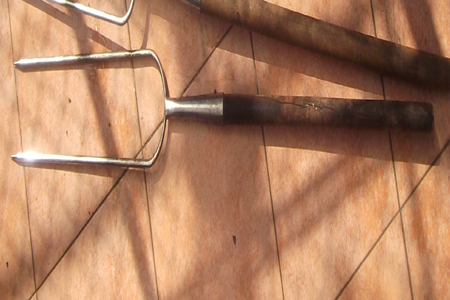 Cây chĩa xiên thịt các đối tượng dùng làm hung khí trong vụ hỗn chiến.