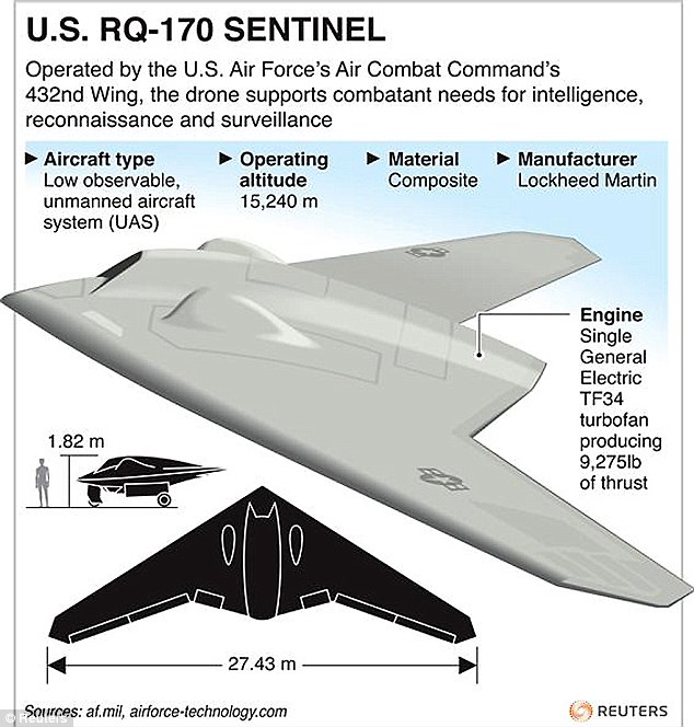 Việc chiếc máy bay do thám tàng h́nh của Mỹ RQ-170 rơi ở miền đông Iran đă dấy lên nhiều nghi ngờ rằng thiết bị bay không người lái (UAV) này rốt cuộc rồi cũng sẽ t́m đường đến Trung Quốc. Thâm nhập vào hệ thống máy bay có thể giúp Trung Quốc sử dụng các công nghệ đảo ngược để có thể sáp nhập các công nghệ then chốt vào các hệ thống không gian bản xứ và phát triển các biện pháp đối phó khiến cho các UAV của Mỹ khó có thể hoạt động gần Trung Quốc. Iran có vô số các động cơ về mặt chính trị, quân sự và tài chính để trao công nghệ này cho Trung Quốc, để đổi lại những ḍng công nghệ từ Bắc Kinh tới Tehran.