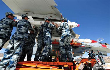Không quân Trung Quốc lắp tên lửa cho J-11 chuẩn bị thực hiện nhiệm vụ