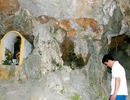Bỏ dở câu chuyện, anh Quyền đến bên bệ thờ, rút ba nén hương thắp vào bát hương còn đầy ắp chân hương. Xong việc, anh chỉ tay về phía dưới bệ thờ và kể tiếp: "Ngày xưa, người chăn dê ở đây hàng bao nhiêu năm nhưng vẫn không hề biết trong khối thạch nhũ này là một bộ xương người. Ngày mới phát hiện ra, người dân hiếu kỳ kéo nhau đến đây xem đông lắm. Cả thị trấn đang yên bình bỗng trở nên xôn xao. Sau này, có thể vì sợ điều gì đó nên cha con ông Nỏ đã tự tay xây bệ thờ này để thờ người quá cố. Ngay dưới bệ thờ này chính là bộ xương đã bị bao trùm thạch nhũ. Từ ngày có bệ thờ, người dân ở dưới thị trấn vẫn mang hương hoa đến đây thắp hương".