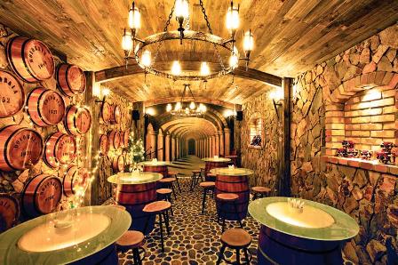 Nội thất của Thị trấn Ba Cây Chổi được làm bằng gỗ cũ, hoặc cố tình sơn phết màu sao cho tạo được vẻ cũ kỹ khiến ai bước vào đây cũng có cảm giác như đang lạc vào một thế giới khác hoàn toàn với thực tại. Những hoạt động của thị trấn nhiều hơn và cũng nhộn nhịp hơn, với xưởng mộc, xưởng bánh, đấu trường, rạp chiếu phim, quán bar với nhiều món ăn, thức uống độc đáo.