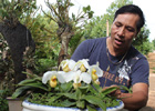 Anh Tuấn chăm sóc chậu Hài hương lan.