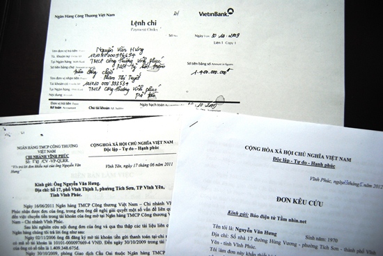 Don keu cuu cua anh Hung.pdf) đến Ngân hàng Vietinbank xem xét và giải quyết vì sao số tiền trong tài khoản cá nhân của anh lại không cánh mà bay thì đến ngày 17/06/2011 nhận được công văn trả lời số 589/CV-VP-QLRR của Ngân hàng Công thương Việt Nam Chi Nhánh Vĩnh Phúc.