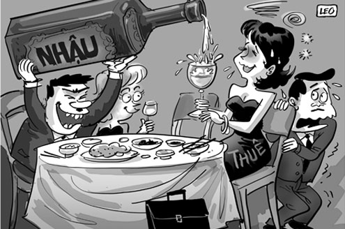 Theo Tuấn, hễ có cuộc tiếp khách làm ăn nào là anh ta lại gọi cho các cô gái làm nghề nhậu thuê. Nhiệm vụ của họ là uống cùng khách và làm cho bữa tiệc đỡ buồn tẻ bên lề những cuộc đàm phán, ký kết hợp đồng hay những thương vụ làm ăn lớn. “Họ đa phần là cô gái xinh đẹp, đang là sinh viên, có bản lĩnh, tự tin và đương nhiên tửu lượng phải vào loại siêu đẳng”, Tuấn cho biết.
