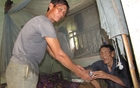 Xong xuôi mọi việc trâu bò, lợn gà, người đàn ông hơn 40 tuổi lại vào nhà, bón cơm cho ông bố 80 tuổi mù lòa đang ngồi bất động trong góc nhà lớn.