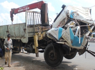 Dân hoảng loạn vì xe tải đang chạy bị lật ca bin