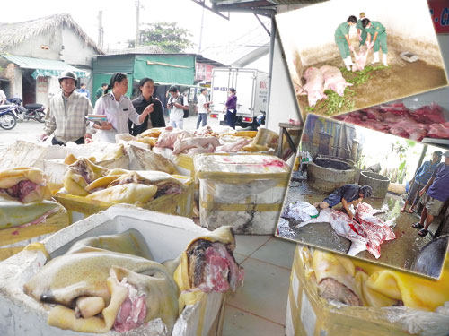 Lô thịt heo nái giả thịt heo rừng, thịt heo bệnh vận chuyển về TP.HCM tiêu thụ bị Trạm Kiểm dịch động vật Thủ Đức ngăn chặn - Ảnh: Hoàng Việt |