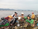 Trẻ em vùng biển Phước Thể vừa cạy hàu vừa đào bắt đồn đột.