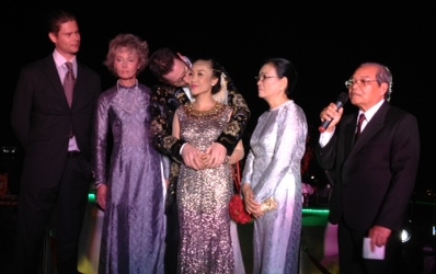 "Chú rể Tây" ôm hôn Đoan Trang thắm thiết