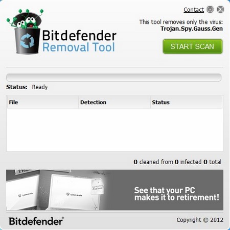 Gauss Removal Tool là công cụ chuyên dụng của hăng bảo mật danh tiếng BitDefender sử dụng để t́m và loại bỏ “siêu virus” Gauss trên hệ thống của người dùng.