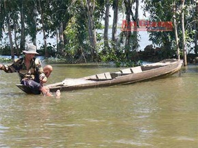Mùa này, khi mực nước trên sông Vàm Nao đang lên cao, việc bắt cá sửu, cá cóc, cá dứa, mè hôi... với trọng lượng vài kg/con trở nên khó khăn hơn, cha con ông Nguyễn Văn Để và Nguyễn Văn Tặng, ấp Vàm Nao (xã Tân Hòa, Phú Tân), tạm xếp tay lưới lết trị giá cả chục triệu đồng vào bao tải lớn, cất ở góc nhà.